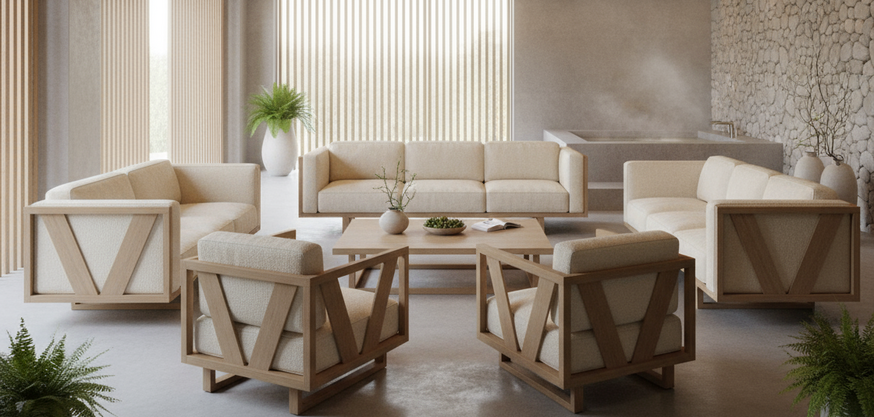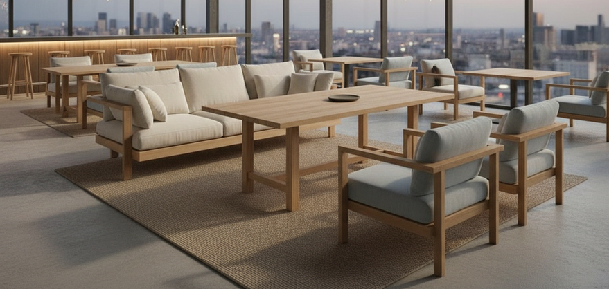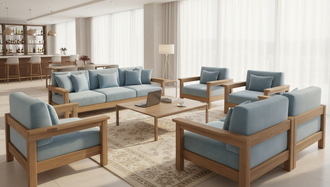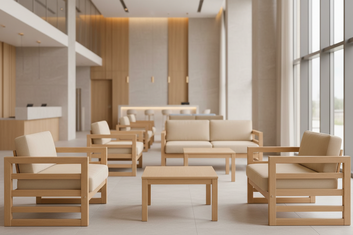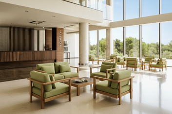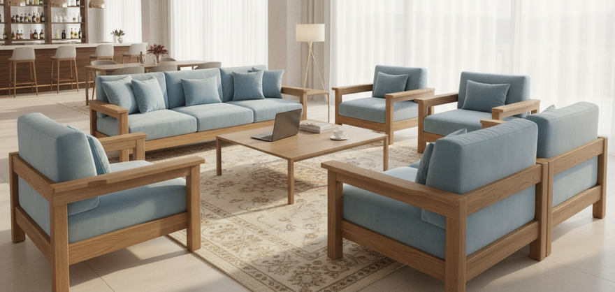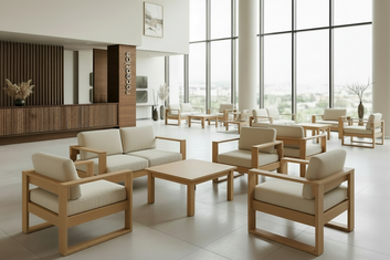 Мягкая мебель в сочетании с деревом - произвордсто РФ, разработана специально для тяжёлых нагрузок современных отелей. Вписывается в любую клиентскую зону.